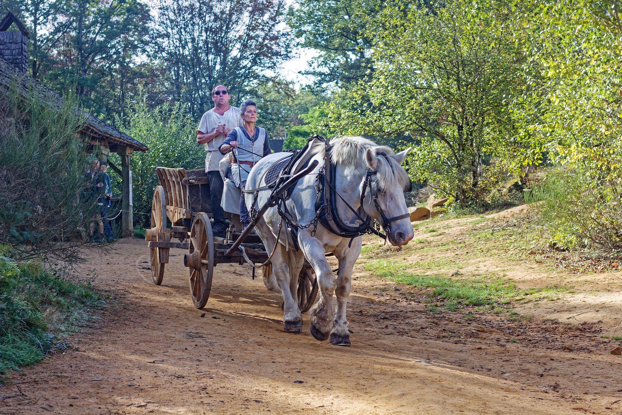 L'attelage sert bien sur à trimballer tout un tas de choses. Le dada ne va pas très vite mais il est "vachement" impressionnant. Un bon exemple de ce qu'est "la force tranquille". Il ont d'autres chevaux qui se la coule douce dans des prés, des bestioles xxl. Semblent pas être malheureux.