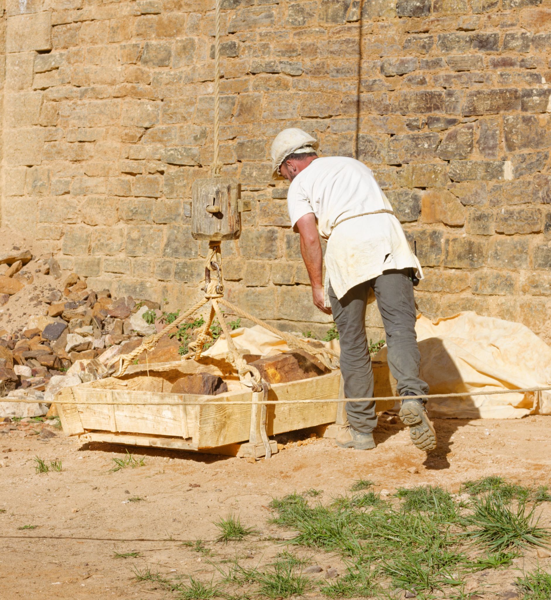 Sur le chantier du château, ils font tout eux-mêmes, les poutres, charpentes, les clous, les outils, les